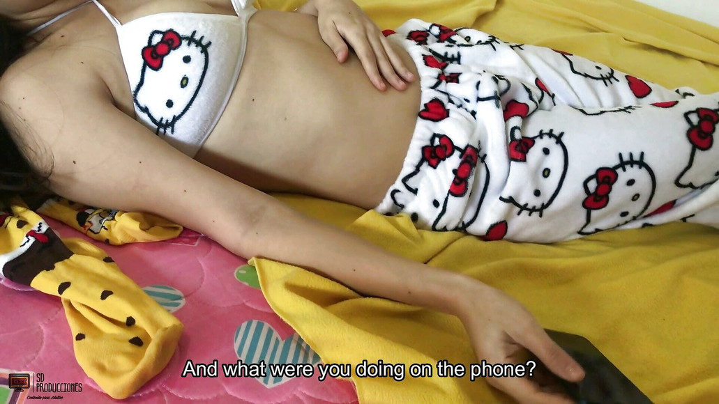 go to my stepsister's room to see what she is doing, we talk a bit until she gets really horny and she gives me some delicious blowjobs, she takes all my milk out of me and I spill it on her buttocks