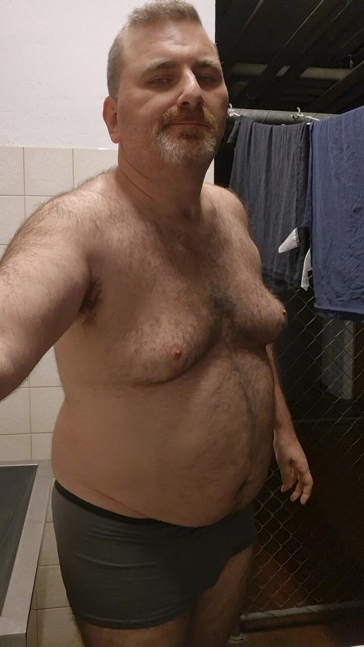 Tlusté a chlupaté medvědí pruhy v prádelně