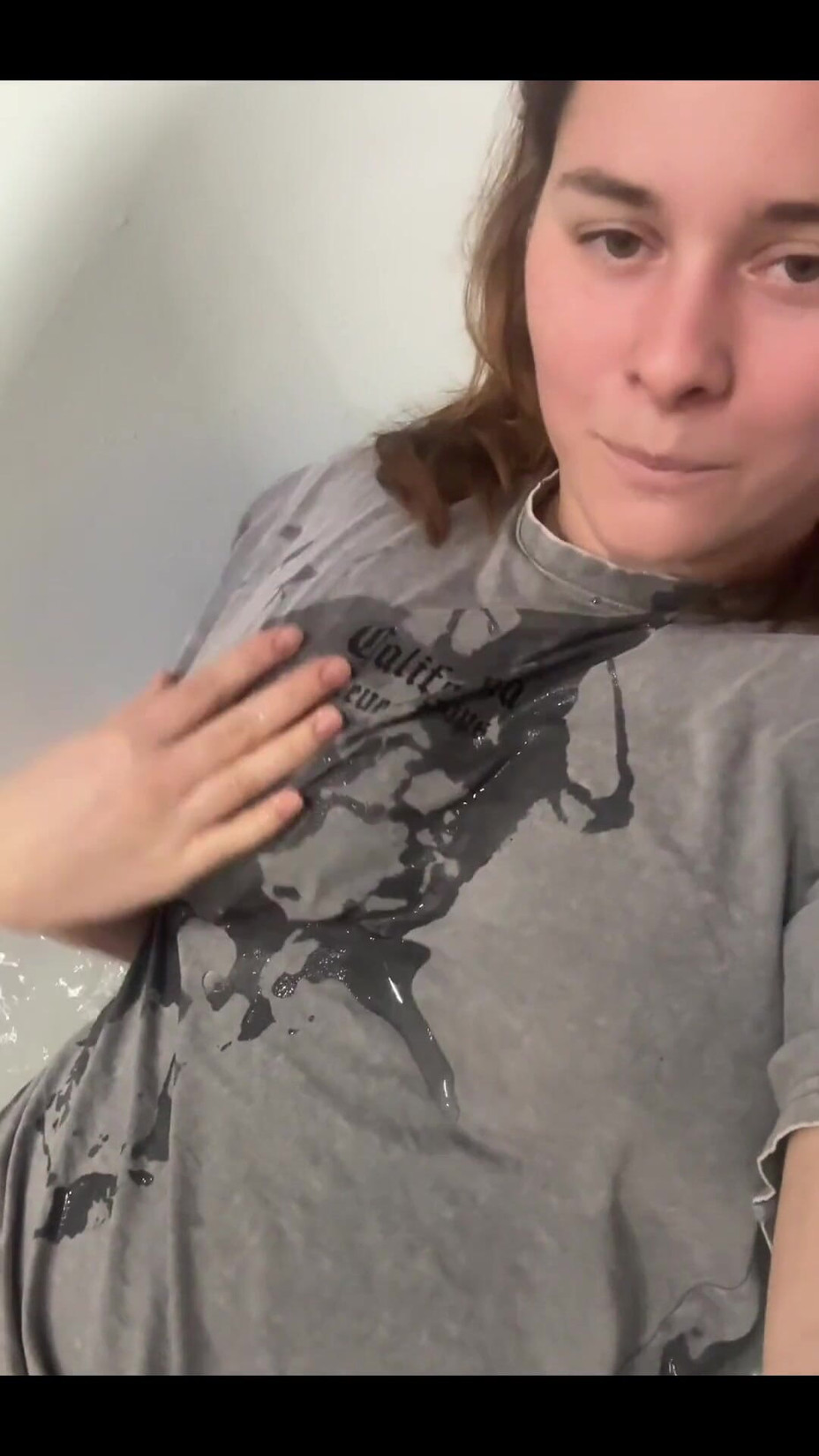 Have you ever gotten into a bathtub fully clothed? It's so fun and sexy. My wet T-shirt clings to my luscious breasts, and my nipples stick out as if they were begging for your mouth…