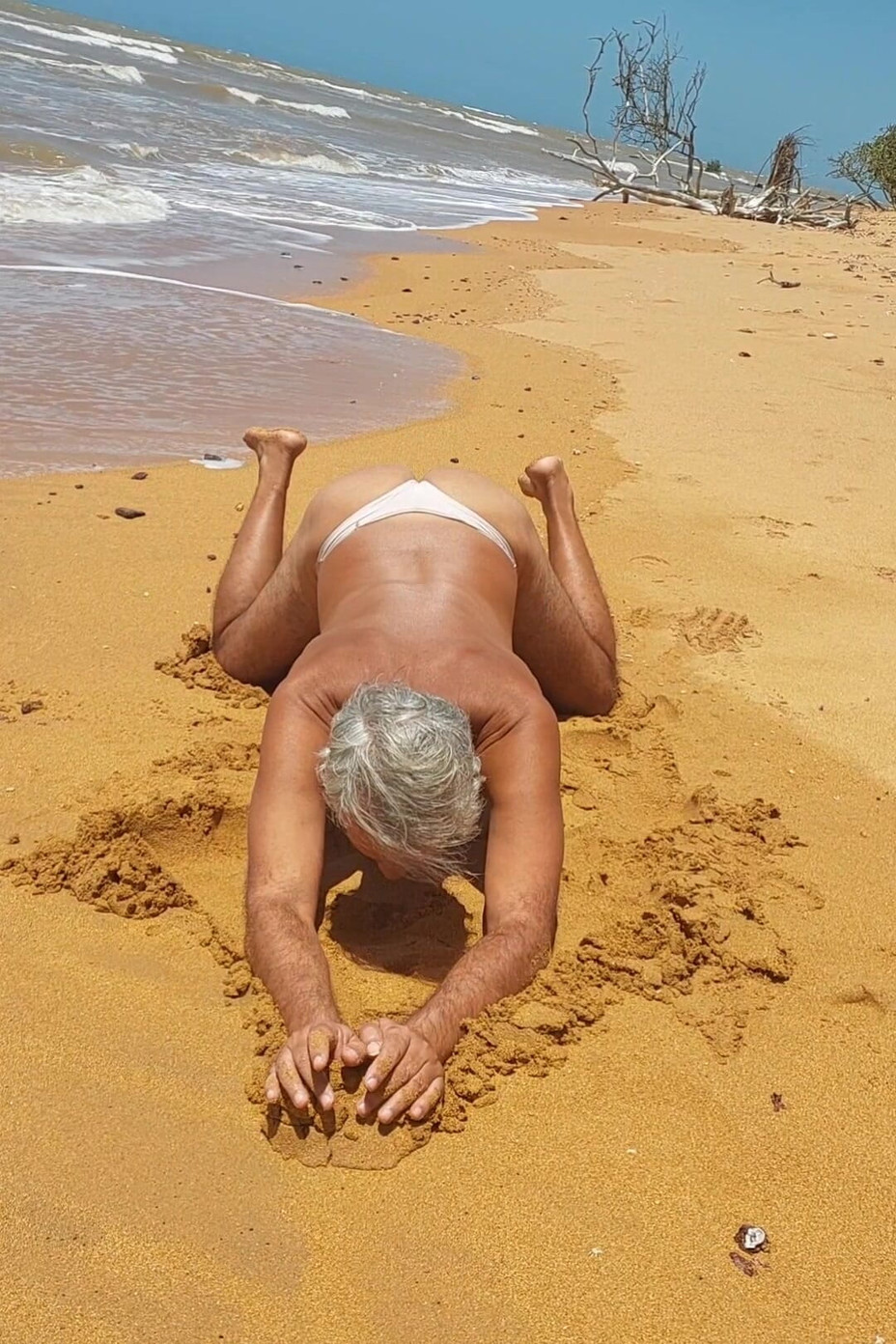 Ladysilvas: Ladysilva crossdresser v kalhotkách na pláži plné nadržených ve svém...