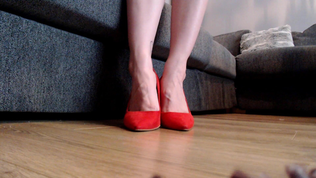Watch me touch myself seductively over the couch, wiggling my dirty red heels in your face teasingly before finally getting up, shoving my heels in your face, walking back and forth in front of you and giving each foot a turn in your slutty sub mouth.