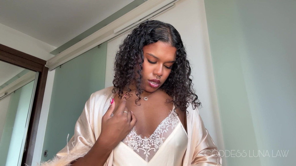 Goddess Luna Law instructs you on how to stroke for her ebony body wrapped in sexy satin tuning you into her slave, Cum countdown, Femdom POV, JOI, Shiny Fetish I’m wearing my satin robe and nightie... soft, silky, and irresistible... and I know that you can’t look away. The way the fabric clings to my skin, the way it moves when I do… it’s all designed to break your focus., to make you weak You’re already melting just watching Me, aren’t you? I tell you exactly how to stroke for Me, My voice sexy low and teasing, making you edge over and over until your mind turns to mush. Every movement, every command makes you weaker, more lost in the rhythm, more obsessed to the sound , the look and the feel of my satin brushing against my skin. By the end, you’re not thinking at all. You’re just gooning, stroking, worshipping a hot ebony Goddess wrapped in satin perfection. I own your focus, your release, your weakness... and you’ll thank me for it.