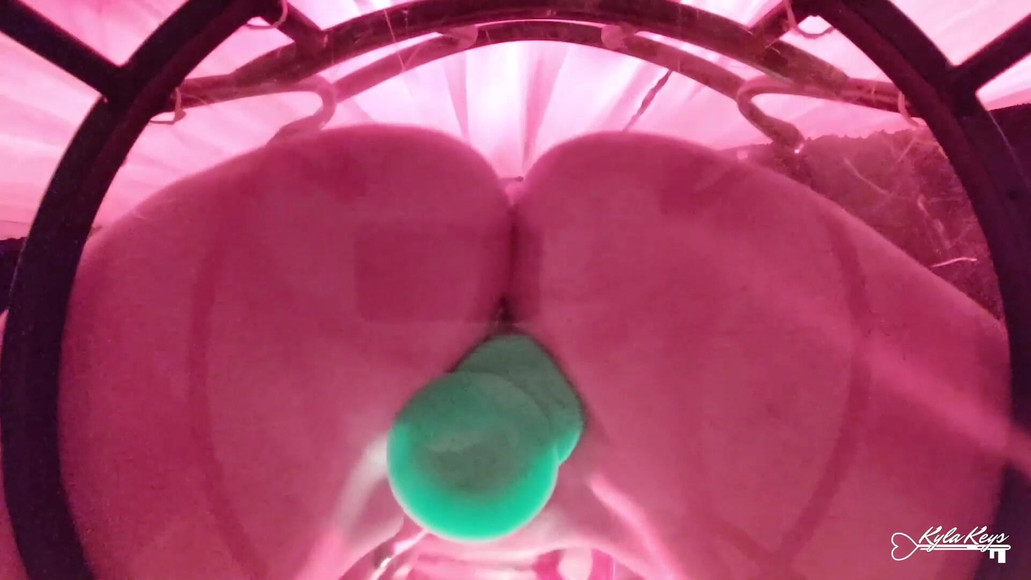 One big green suction dildo plus one clear bottom chair equals plenty of orgasms.