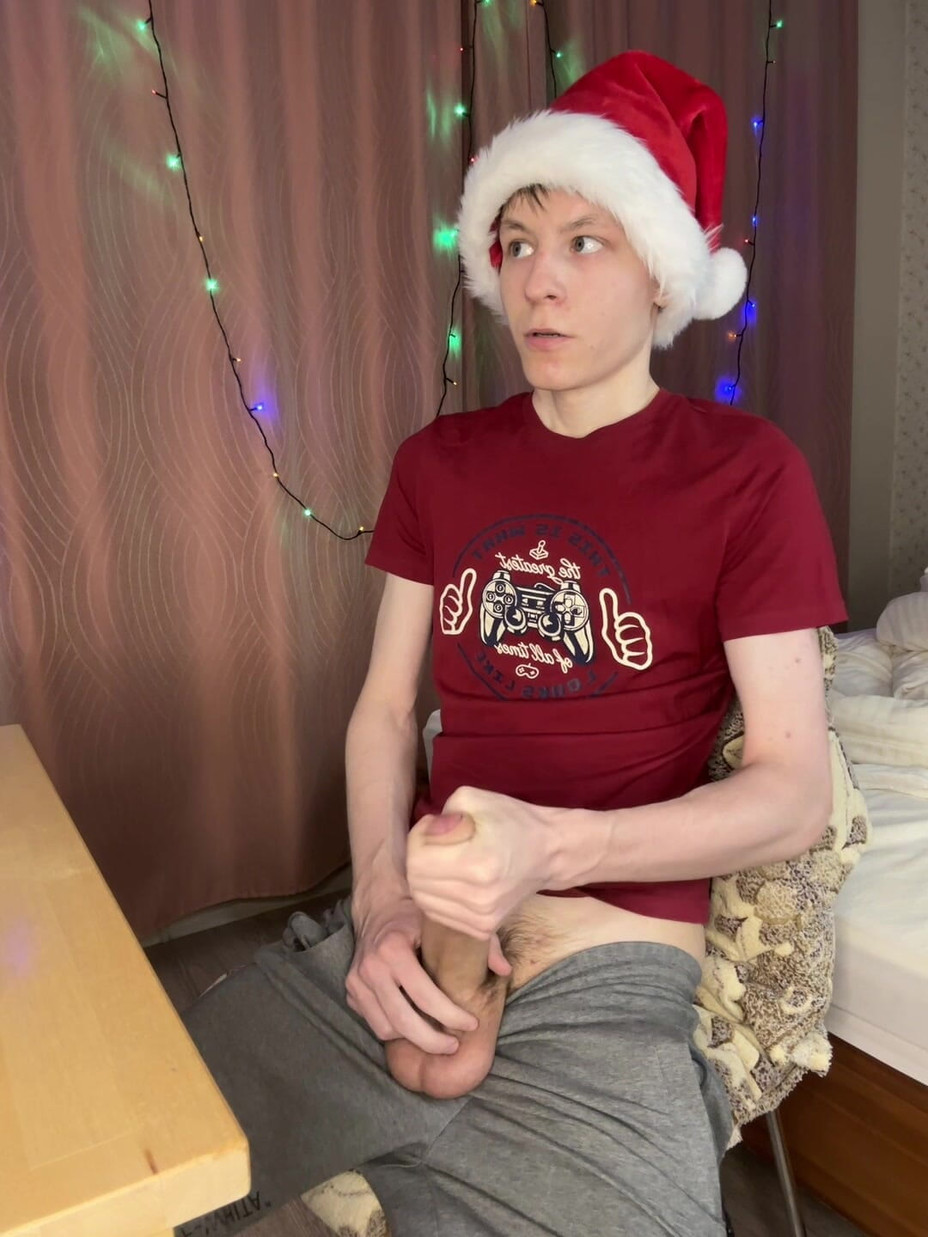 I’m an 18-year-old skinny twink with a massive young cock that barely fits in my hand. Watch this amateur twink strip totally naked. Grab that big cock and start a hot handjob. Slow strokes from the base up to the shiny head. Then faster and faster till the veins bulge and my balls slap against my thigh. My abs flex tight. My back arches. And boom-huge gay cumshot! Thick ropes of cum blast across my chest. Drip down my abs. And I milk out the last drops onto my fingers. Homemade solo from a cute gay boy who knows how to edge himself to explosion.