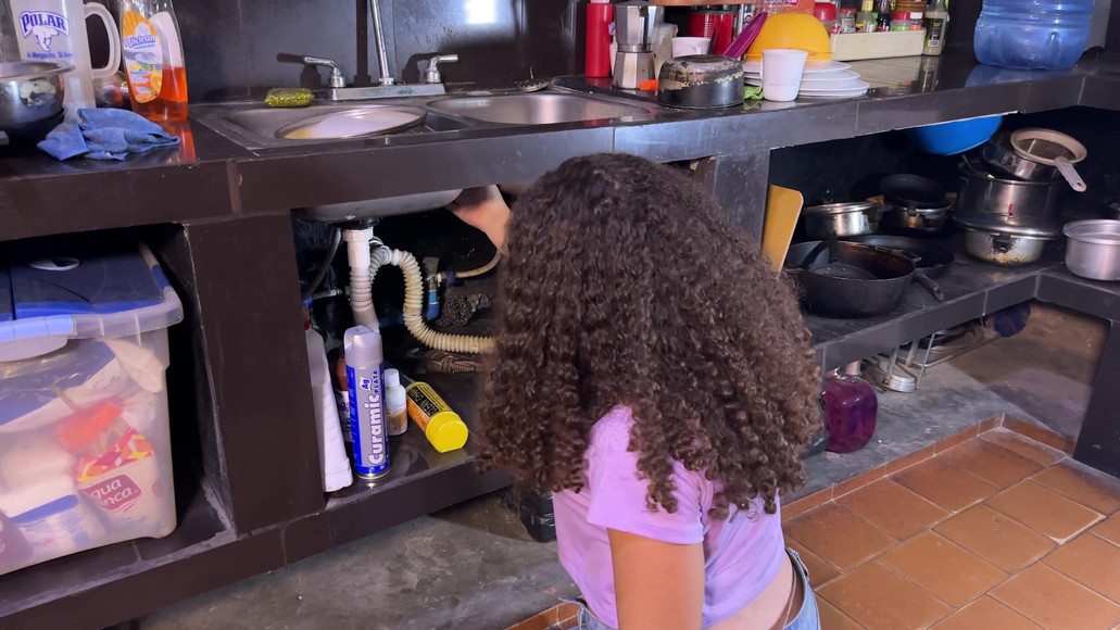 Die Röhren sind undicht, es werden Notarbeiten erforderlich. Der am schlechtesten bewertete Klempner ist der einzige verfügbar. Sie kommt im haus an und hat keine ahnung was sie macht. Ihre Hose fällt runter, während sie arbeitet und ihr hintern ist sichtbar.