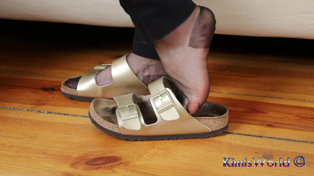 Ein ruhiger Moment voller Bewegung und Details: In diesem Clip wechselt das Model zwischen eleganten Loafern und goldenen Clogs, während sie in echten, hauchdünnen Nylons spielt. Sanftes Dangling, langsames Gleiten, kontrolliertes Absetzen – jedes Detail wird sichtbar, wenn der Stoff über die Haut zieht und die Schuhe sich immer wieder lösen und zurückfinden. Der Clip konzentriert sich auf natürliche Bewegungen, authentische Close-ups und den Kontrast zwischen Nylons, Schuhen und Bodenstruktur. Eine reduzierte, stilvolle Szene – genau im KimisWorld-Look.