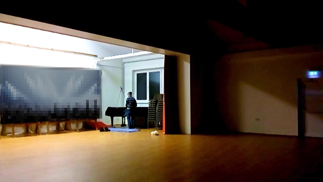 Ich mache eine sehr schnelle riskante Hump Masturbation in einer Music Halle 30 Minuten bevor sich die Musiker zur Uebungsstunde treffen.