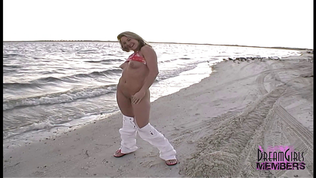 She gets naked on the beach and then plays with pantyhose back at my place.