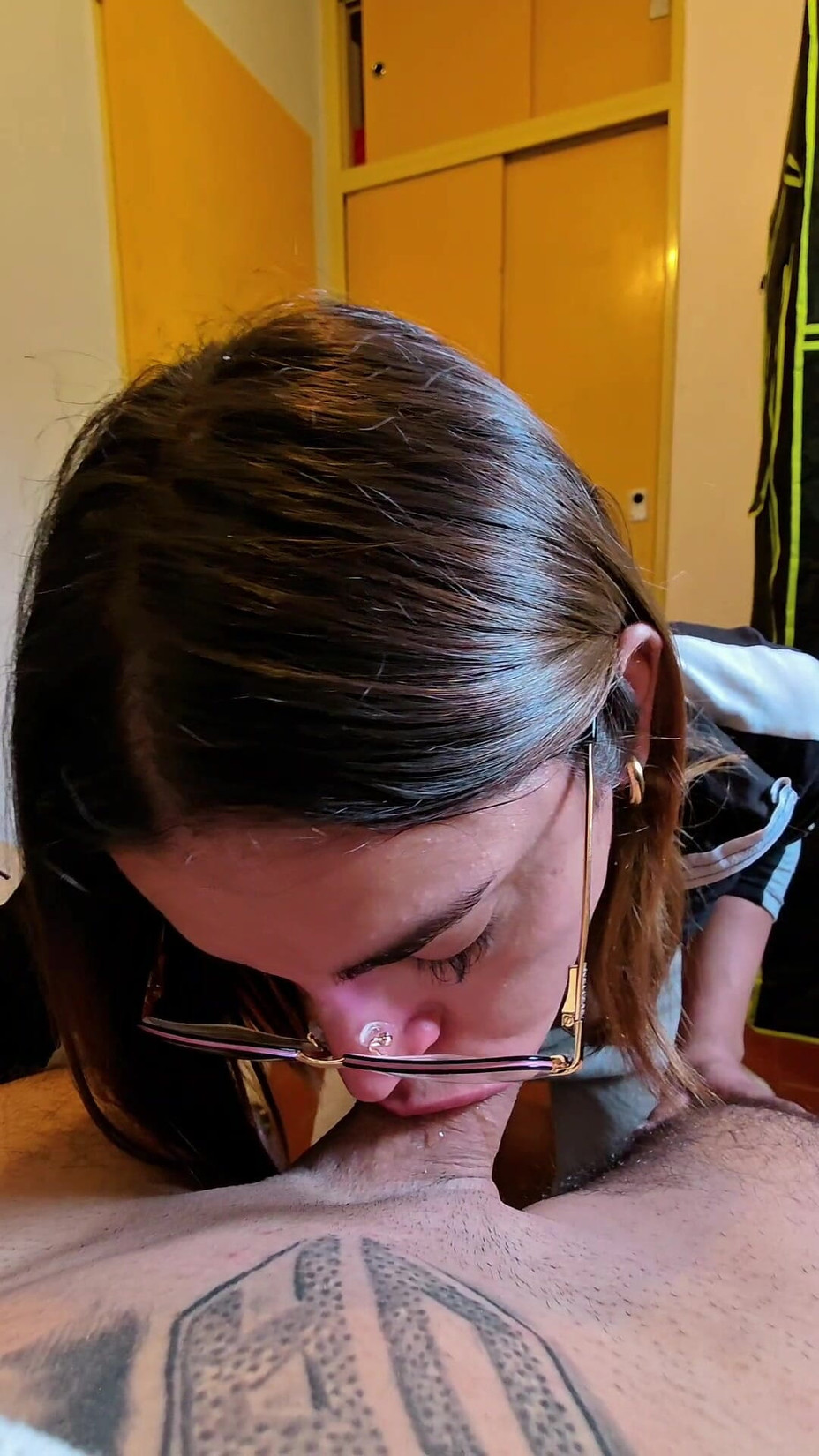 Entre a su cuarto para terminar unas cosas y lo encontre masturbandose mientras miraba porno. Su gran polla me llamo la atencion y no pude contener las ganas de hacerle una gran garganta profunda