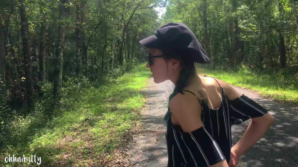 My bae & i were driving along the road when i reallllllllllly needed to pee; i was desperate! So, we stopped on the side of the road and got out of the car. Bae walked behind me & followed me down the road to a tree that i thought i could be a little sneaky behind, but i was still very visible by the road! I pulled the shorts on my romper to the side to expose my hair bush! When i started peeing, a car started driving by, so i had to stop my pee stream & cover my pussy back up! When the car left, i started peeing again! It felt SO good and i was so relieved!!! I love peeing outside in nature!