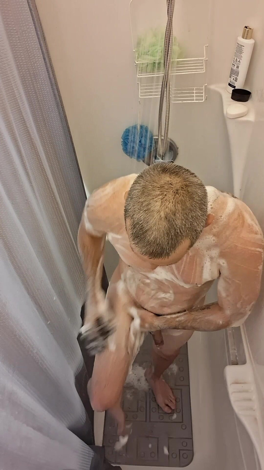 Dubesnackes, montre son temps, savonne et caresse le corps de son père sexy. Se préparer pour le travail et s’habiller. En prenant des photos devant le miroir nu avec sa bite qui traîne.