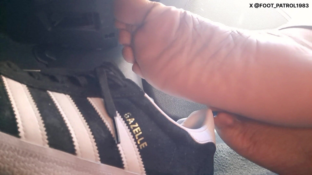 02:48Foot Patrol was with Yolanda in his car about to go out. While he is driving teases and seduces the driver with her size 10 feet.