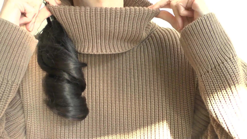 07:02Today I'm wearing a thick, loose, long turtleneck sweater! I'll show you my sweater, you can sniff my sleeves. I'll come closer, you can rub your face against my sweater. My sweater is so cozy and warm. Oh look, you've got a big bulge in your pants again! Start masturbating! I'll rub my soft sleeves against your face. You can really indulge your sweater love! Finally, you can cum on my sweater!