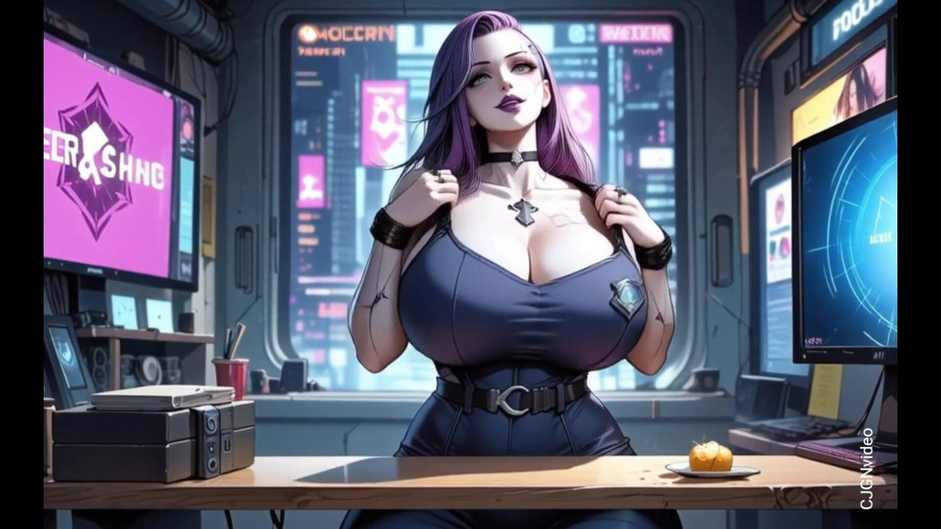 05:36 AI NoticeHot beautiful cyberpunk girl undress and grab breast in office. NSFW, semi-realistic cyberpunk style, cyberpunk office background, music made with Ai music generator. Ai generated Video divided with many beautiful short sexy scene with relaxing music. No real humans nor real faces (face swap) have been used for this video. All models appearing in this video are over 21 years old