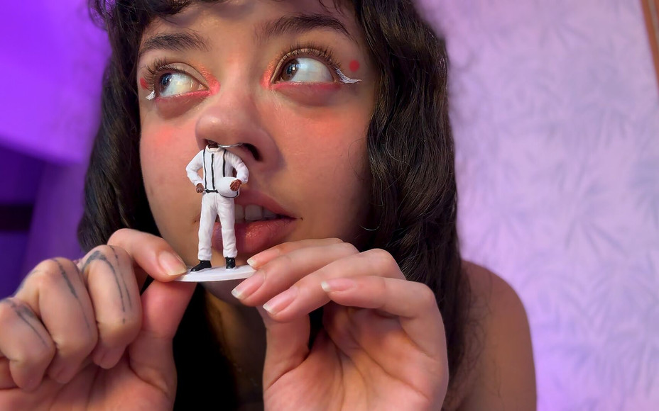 12:38In this clip, I play a dominant and cruel giantess. I find the tiny trying to hide and capture it between my fingers as if it were nothing. Before devouring it, I slowly push it up my nose, trapping it in my giant breaths while completely covering it in thick mucus, leaving it no chance of escape. Now soaked and unable to, I slowly devour it, savoring every second as I feel it move in my mouth before swallowing it. Once inside, my stomach begins to inflate, showing how it's being crushed from the inside as I massage my belly and mock its fate. Down here, I'm in charge… and you're just there to be part of my body.