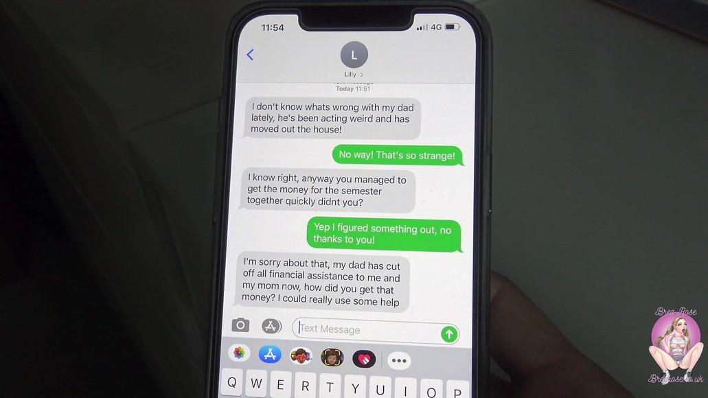 Custom vid, you can order one too by emailing brea77rose. I ask my friend if her step-dad could lend me some money to pay for the semester at school because I can't afford it but she is really mean about it, I am gonna make her pay for this. I go and speak to her step-dad wearing the shortest shorts and a tiny top, I always see him checking me out so I think this will work, although he has been married for 20 years, and he seems loyal. I go and ask him if I could borrow the money but he says no, I try and tease him a little and ask how his marriage is going, I bent over in my short shorts. I ask him if he wants to make a deal: if he sends me the payment the semester I will let him fuck my tits, he can't resist and and he agrees! I spit all over his cock and my tits and bounce my tits up and down on his cock. I then ask if he wants to make another deal, I will give him the best blow job of his life if he sends me the payment the whole year... and he does it, this is too easy! I the