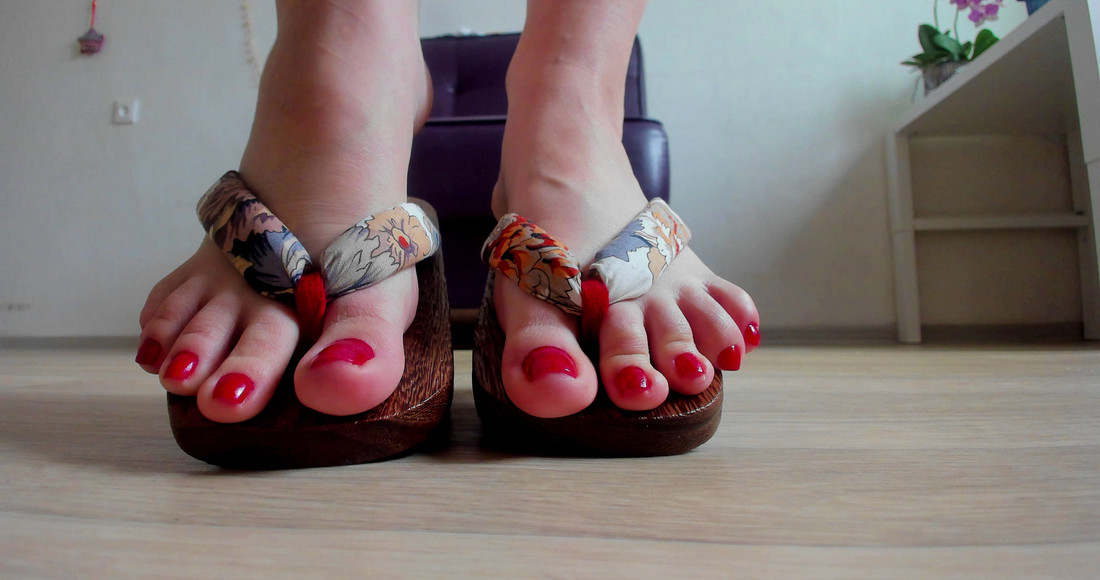 09:08Pink soles walking in geta! Close up view on my cute toes in red color. Pointed toes, wiggle in geta and dangling.