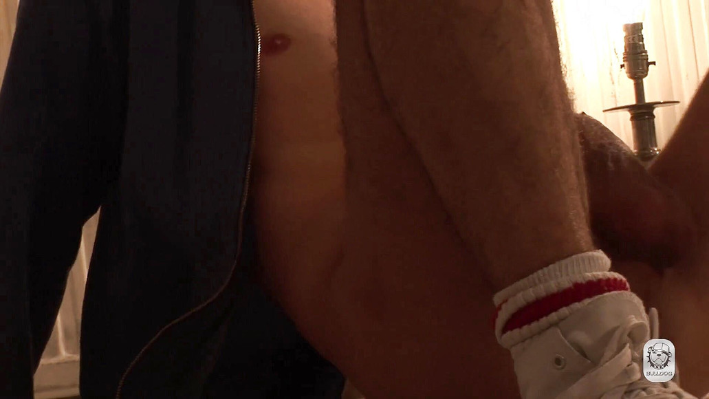Arriving too late for the action, dark haired Alex is left with the stench of sex in the lair and not much else but used condoms and spunk soaked sweatpants. This doesn t put him off though, quite the opposite as his whips out his solid dick, pulsating with the thought of what went on, and ready for the next time, he wets his shaft. Gently massing his head and length, our stubbled boy slaps his dick around as he plays with himself, showing himself to the camera and for our pleasure! When he pulls his legs up by his shoulders and exposes his smooth pink hole directly to us, we know we re in for a good show, and it s guaranteed when he sticks his fingers deep into his wet ass, slapping and pulling his cheeks apart. Keeping position and fingering himself as he uses a fleshjack on himself, the moment he rides up further and shoots his load in his own mouth and face will stay with you long after you ve shot your own!