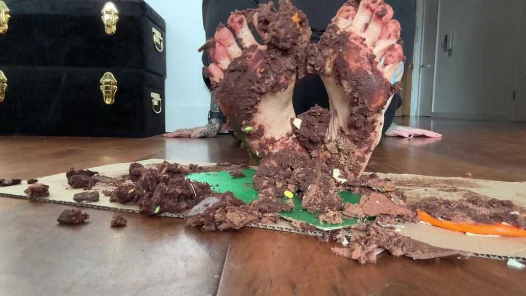 This cutesy little chocolate cake is gonna get wrecked by my feet.