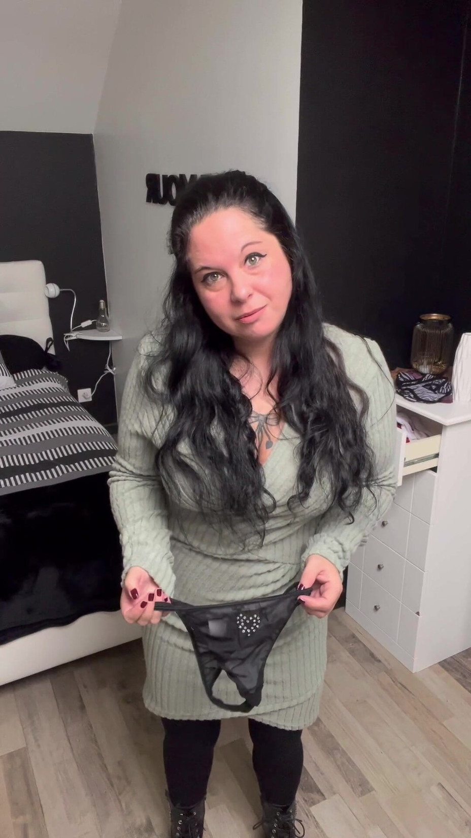 This time, I realized that you had rummaged through my string drawer. I know, the drawer was badly closed, on top of that, I already find you very hard and ready to explode. Could it be the excitement of having searched and smelled my thongs? I'm going to tell you what I think of scumbags like you who allow themselves to look into my affairs, but I'm also going to finish you, empty you, to the point where you are. On the other hand, you will have to lick everything in the palm of your hand. Your as punishment... I'm wearing a green dress and ankle boots... Language spoken: French. No subtitles.