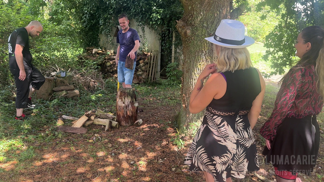 Yannick Shaft and Stéphane ProdX are having fun splitting logs. My friend Cat in Mini and I decided to take care of their big bubbles... Our tight little pussies loved it.