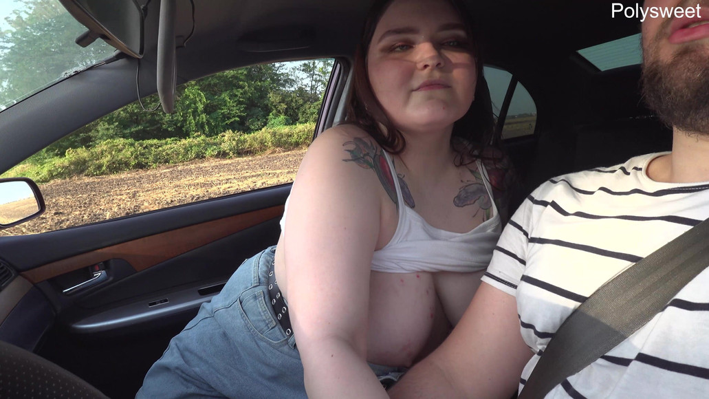 Vagina mengutak-atik di dalam mobil - payudara, kaki, di depan umum