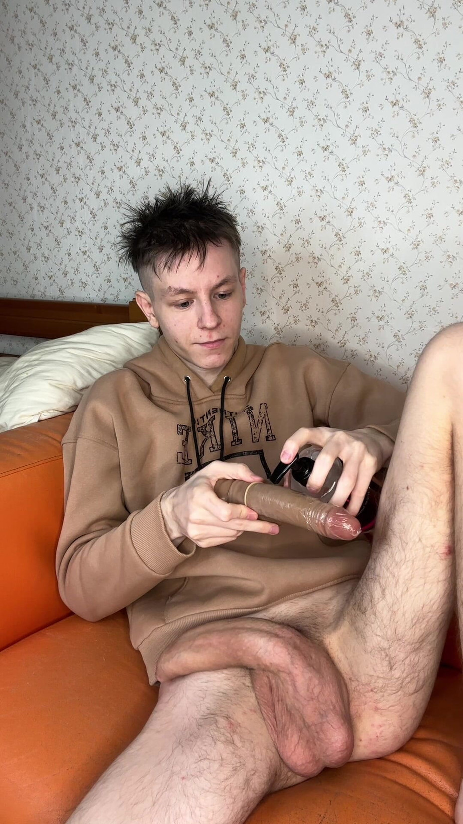 I’m an 18-year-old skinny twink with a massive young cock that barely fits in my hand. Watch this amateur twink strip totally naked. Grab that big cock and start a hot handjob. Slow strokes from the base up to the shiny head. Then faster and faster till the veins bulge and my balls slap against my thigh. My abs flex tight. My back arches. And boom—huge gay cumshot! Thick ropes of cum blast across my chest. Drip down my abs. And I milk out the last drops onto my fingers. Homemade solo from a cute gay boy who knows how to edge himself to explosion.