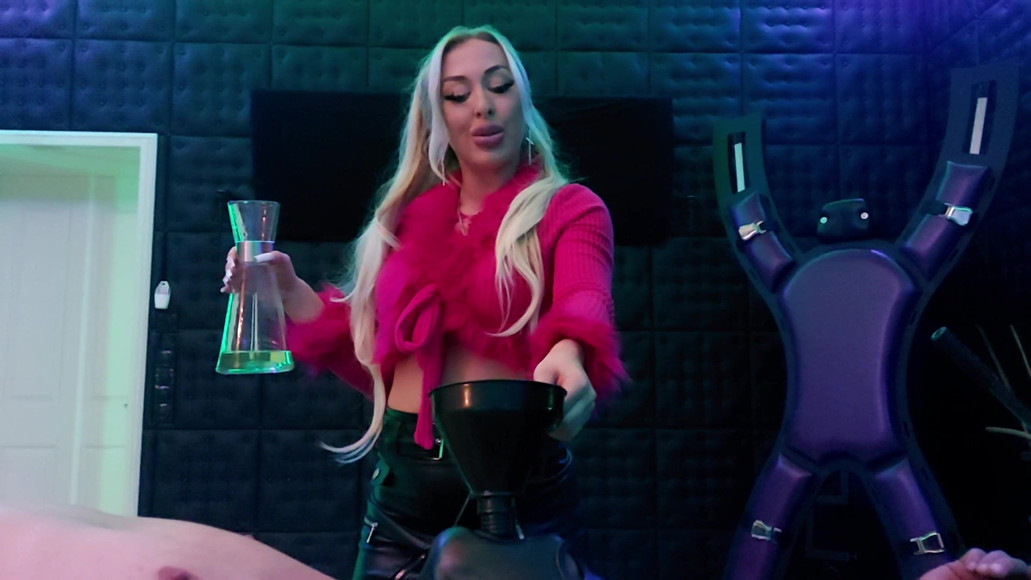Sheela Sinner The Racked Toilet Slave. My friend Mistress Luciana is on vacation for a few weeks. I'll take care of her domicile and her house slave in her absence. I check whether your slave has completed his tasks correctly and can use this useless piece as I like. Today I put the slave on the rack and stretched him so long that he can hardly move anymore. I didn't care at all about his whining. Because that was just the preparation for what was to follow. He gets a funnel in his slave mouth and I fill it with my divine piss. See what happened