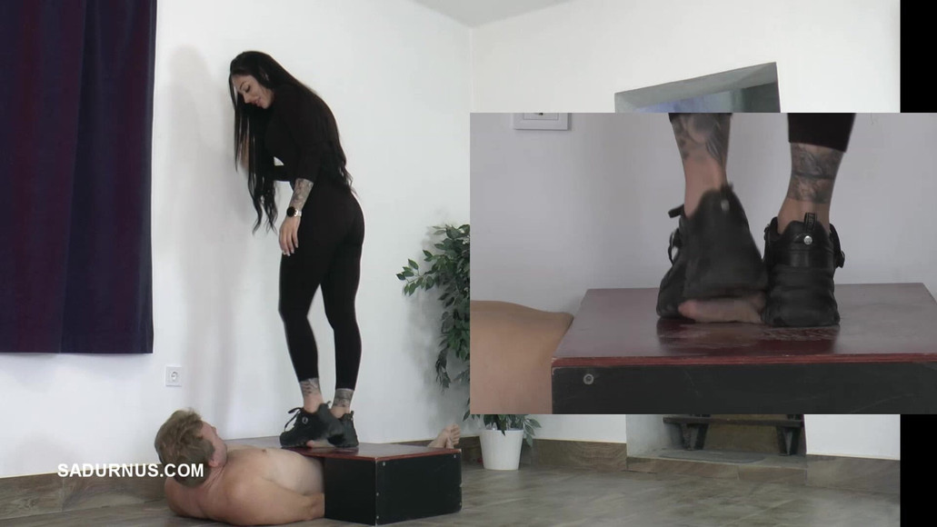 The beautiful Mistress Cleo is as sadistic as she is beautiful. The mistress tells the slave to put his tail in the cock box. There, the mistress steps on the slave's tail and balls. He jumps the slave's tail with his shoes, kicks it, steps on it. Mistress really enjoys her games in which the slave suffers. But surprisingly, this is exactly how the slave orgasms.