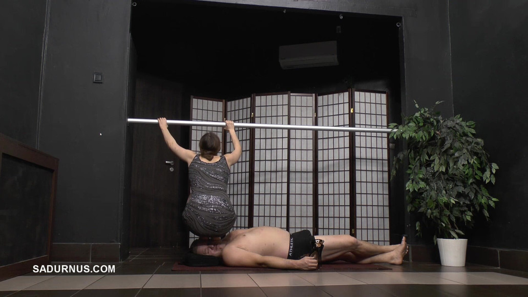 La bellissima Cassy è almeno sadista come bella. Sta calpestando lo schiavo! Con tutto il suo peso pesa e salta, sale su di esso! Il servo ne sta godendo, ma chi non farebbe pur essendo calpestato sulla testa da una donna così bella?