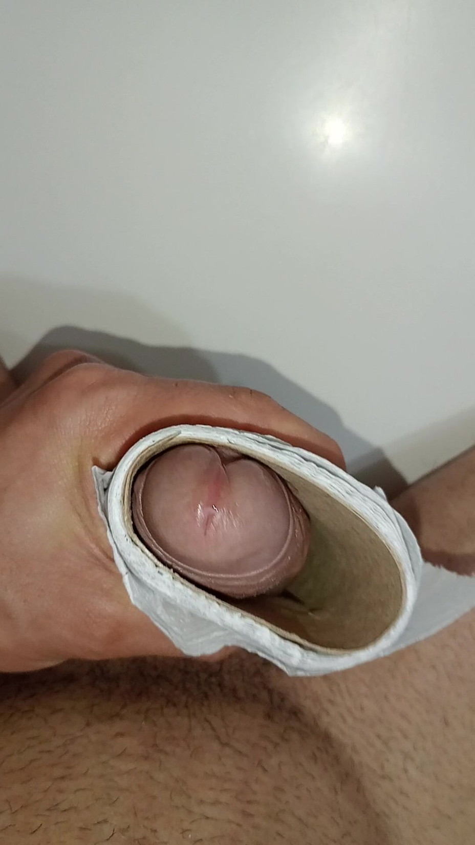I go to the mall and masturbate until my cock gets big and venoza, i use a roll of toilet paper as a makeshift pussy, wet cock with cum drops, lubricate my penis