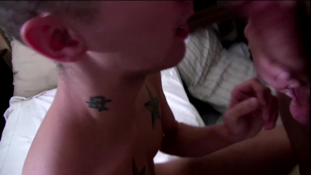 This down on his luck 18 year old did not know what he was in for, but he is so desperate that he let us do whatever we wanted to him. He has nowhere to go but the halfway house, so he just took it - in the mouth and up the butt. After he is fucked, stripped, and his mouth is spat in for some dick-sucking lubrication, we finger and play with his asshole to prime it up. His hole is so tight it takes a while for my buddy to get his fat cock in there, and the whole time we are taunting him. I smeared lipstick on his mouth and made him suck my dick like a cock-sucking whore, and while my friend was fucking him he wrote -SLUT- across his chest. After sufficiently loosening his hole so that it was gaping, me and my buddy shoot huge loads on his pathetic face.
