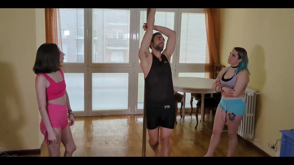 Faccio una lezione di Pole Dance ai miei due studenti e finiamo per scopare