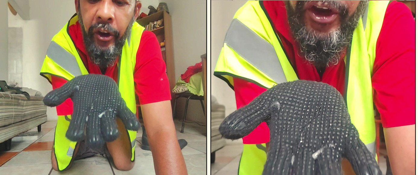 Here are boots, white socks, work pants and a work coat - gloves and a helmet. Aroused in the scorching heat, I masturbated until I came, rubbing my white underwear against my ass. I came hard.