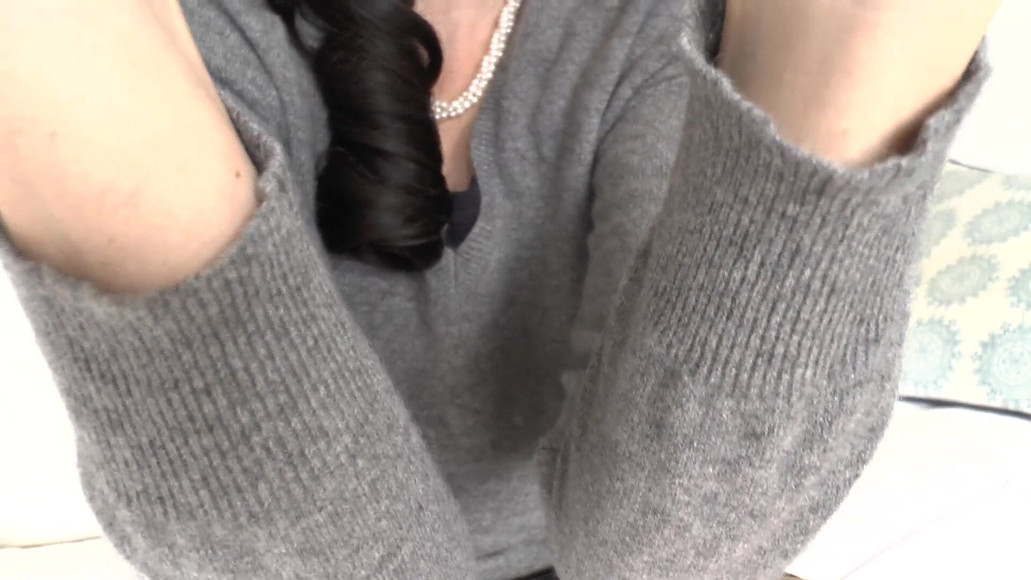 Today you're standing at my door again! I let you in and I'm very surprised to see you again today. I thought we settled this yesterday. You tell me that you want to see me every day until your wedding. I tell you that I find you impossible. How do you imagine this working? Well, since you're already here, let's play our game again today. You can look at me as I sit here in front of you today in my gray cashmere sweater. Yes, you like it too, you like all my sweaters! You can masturbate. I rub my arms against your face. You can bury your face in my sweater and feel the soft cashmere. You can cum on my sweater. And I'm telling you again, these meetings have to stop, you'll be married soon!