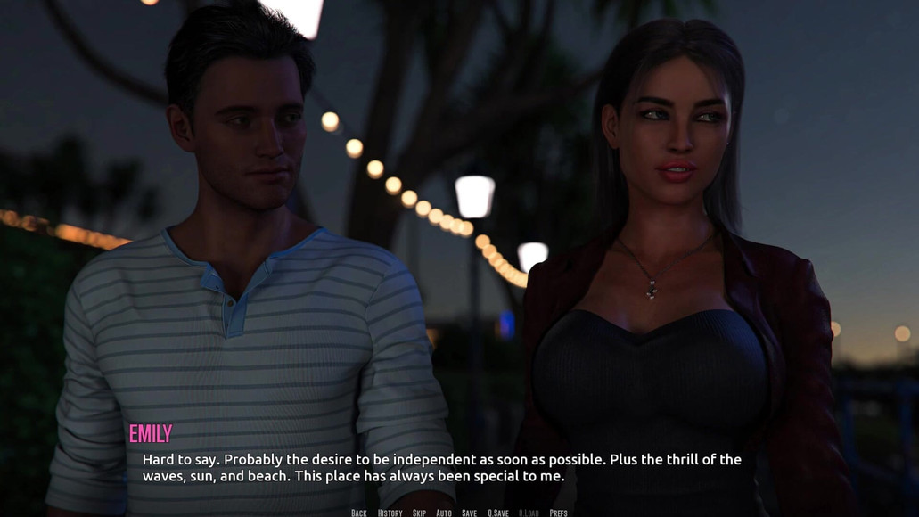 In this compelling episode of Domino Beach, Jhon takes a reflective night walk along the shoreline, still riding the adrenaline rush from saving a man's life at the beach. Just when he thinks he has nowhere to rest after receiving a lifeguard job offer, he crosses paths with Emily, a stunning lifeguard who could change everything. What starts as a chance encounter becomes an intimate connection filled with tension and possibility. Will this night lead to more than just a job offer? 3D, visual novel, romance, lifeguard, beach, adventure, job offer, saving a life, connection, interactive, adult games, 3D visual novel, romance narrative, beach life, lifeguard stories, intimate encounters, Domino Beach, interactive story