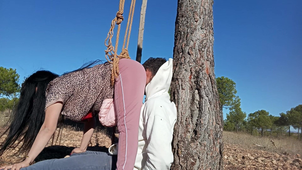 彼の顔の前でおならをしながら、私はお尻と木でそれを潰している