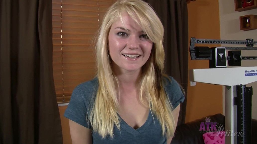 Petite Chloe Foster weighs in and shows how tiny her shaved pussy is.