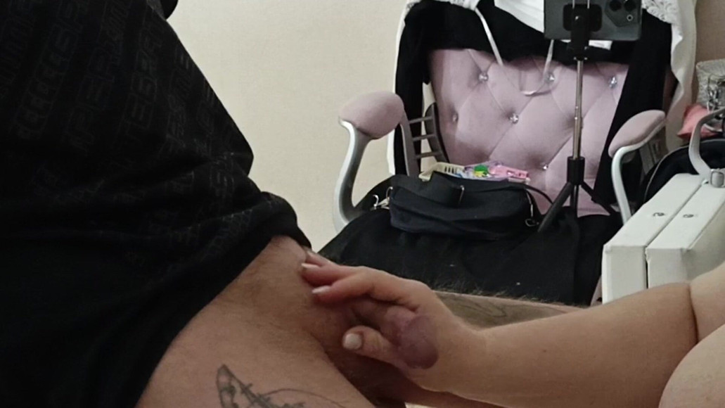 Stepmom does an oil dick hand job.