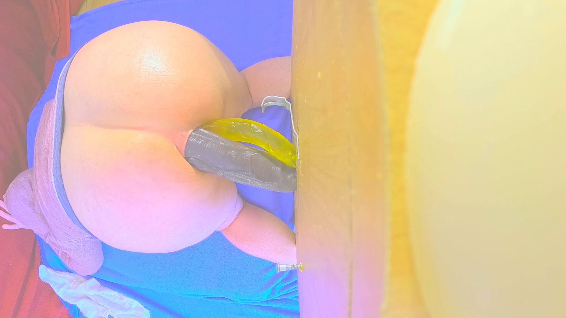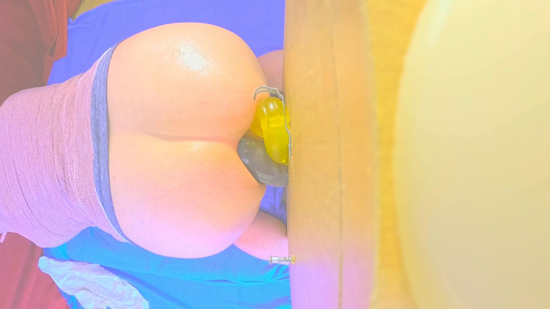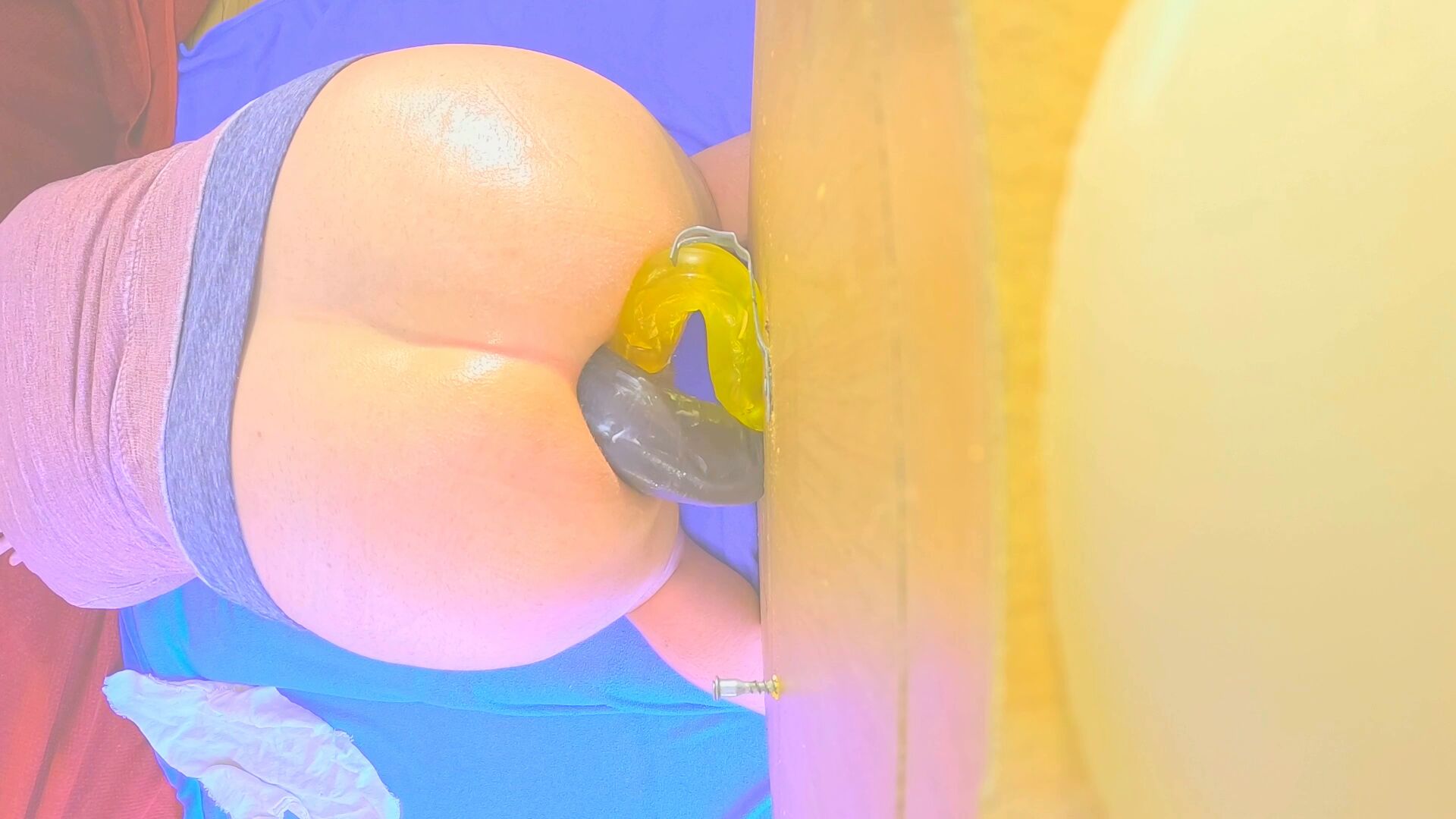 after having the 2 inch steel ball hook inside plus the long dildo my butt starts burping and makes loud munching noises as i slowly lose control having an anal orgasm