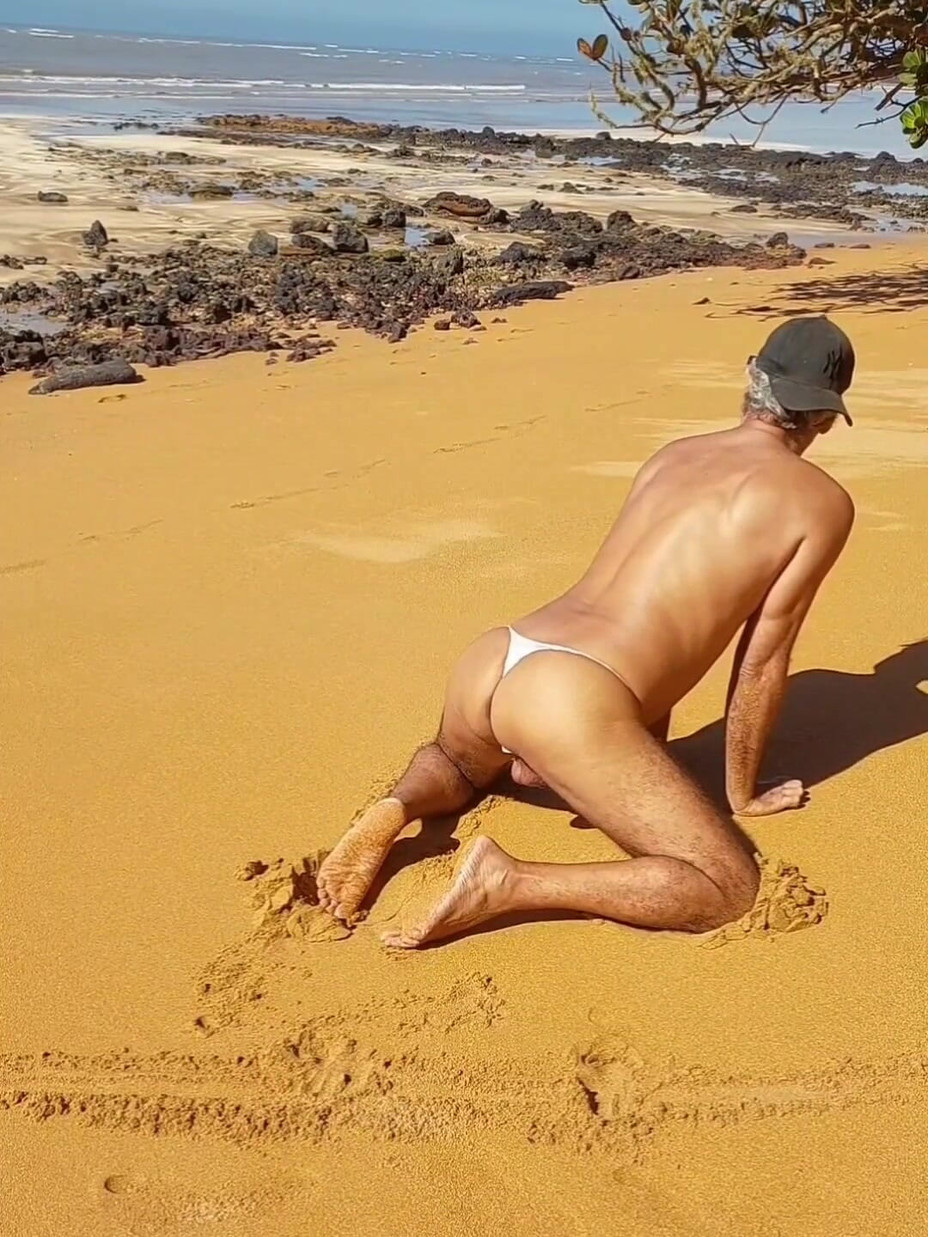 レディシルバのクロスドレッサーがビーチでパンティ姿でホットなお尻を見せる