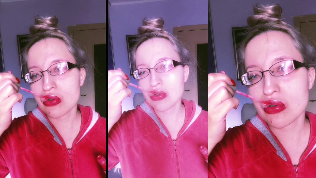 ASMR Red Lipstick and Mini Cake Eating listen in headphones