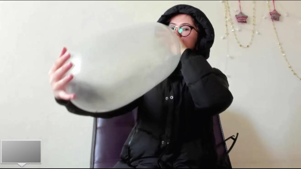 First time blowing and poping condoms in black poofy coat. It was so exciting and funny!