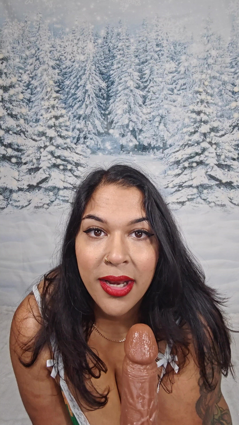 Zozo is desperate to get off the naughty list and onto the nice. She will do anything! She gives you a sloppy deep throat BJ, strips off flaunting her big bum them slurps on your cock again.