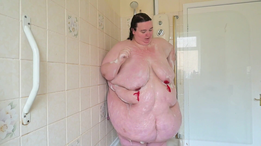 Ssbbw ladybrads takes a shower in her bikini bottoms wearing tassles part 1