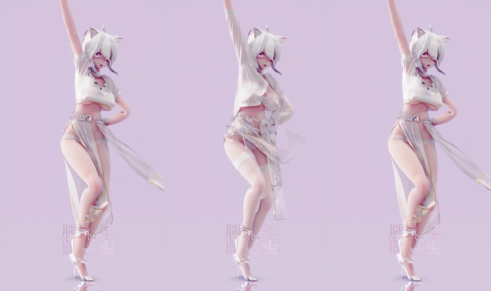 Anklets; Fetish uniforms; Erotic lingerie; High heels; White stockings; Pantyhose; Garter belts; Thongs; Miniskirts; Striptease; Korean dance; Erotic tattoos; Succubus tattoos; Explosive bust; Big tits; Big ass; Shaved pussy; Tight pussy;