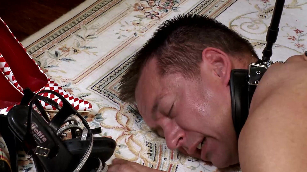 Muscular guy in collar gets dominated by woman in fishnets and heels You won't believe this insane BDSM scene where a submissive slut in a tight collar is getting ly dominated by a bitch in sexy heels, watch as she crushes his face with her stilettos while he begs for more! The intensity is mind-blowing as she tramples him, making him moan and scream, before finishing with a wild session of hardcore foot worship that'll leave you craving for more!