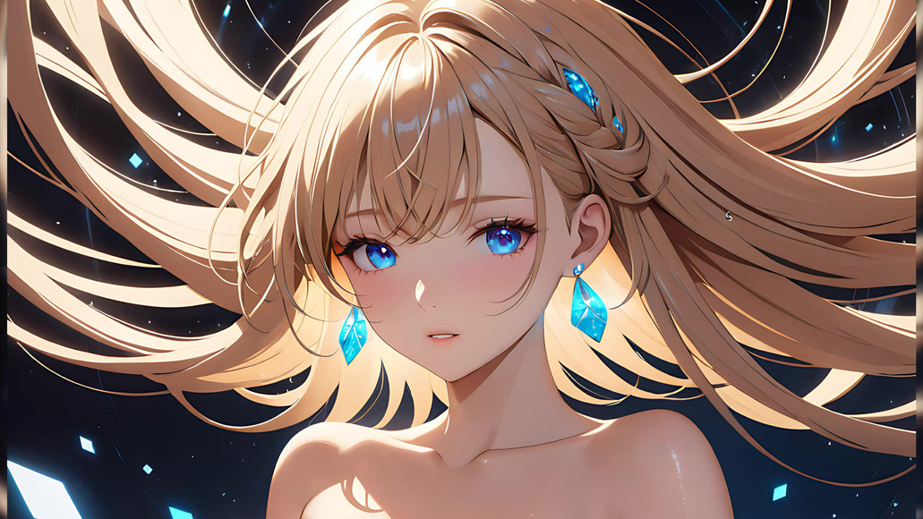 A calm and ethereal slideshow featuring AI-generated scenes of a girl blinking slowly as her hair drifts weightlessly around her. Slideshow videos generated with AI, creating a serene atmosphere with soft lighting, gentle motion, and a dreamy, floating aesthetic. AI art, weightless hair, dreamy aesthetic, soft motion, ethereal visuals, AI slideshow, digital art, serene atmosphere, floating hair, gentle lighting