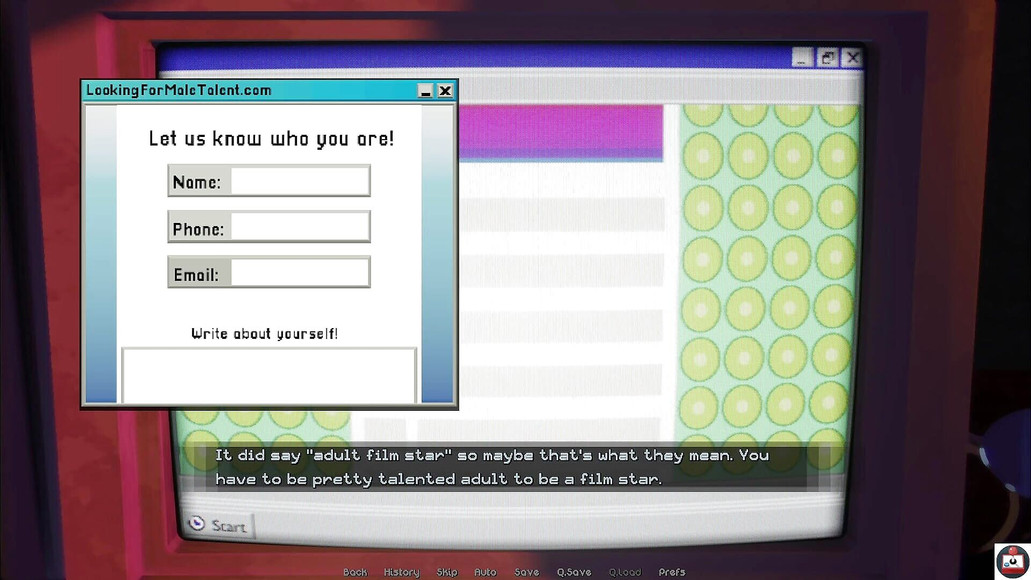 An 18+ Visual Novel set in the early 2000s, about three girls trying to make their way into the adult entertainment industry! They meet you, a clueless fisherman, who has no idea about his potential. Get to know the girls closely and make fun naughty videos with them! It's a comedic, lighthearted and goofy story filled with lewd stuff!