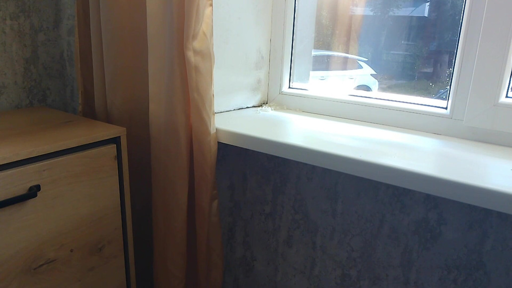 The neighbor was collecting clothes and the perverted neighbor started to harass the neighbor with a big ass and she does not mind being pulled to squirt by the window on the bed